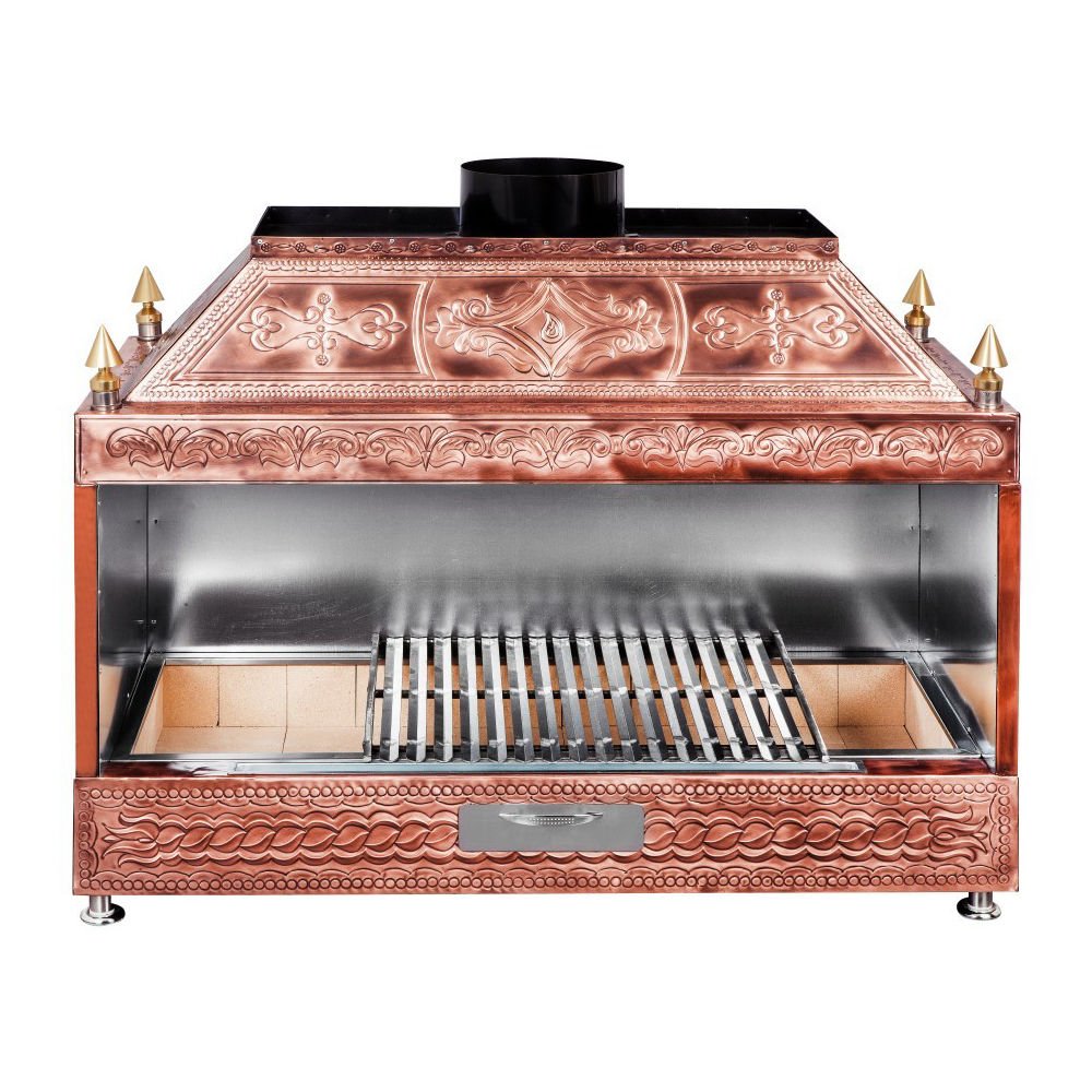 Bakır üzerine el işlemeleri ile bezenmiş, ateş tuğlası ve izolasyonu ile özel tasarım eseridir.