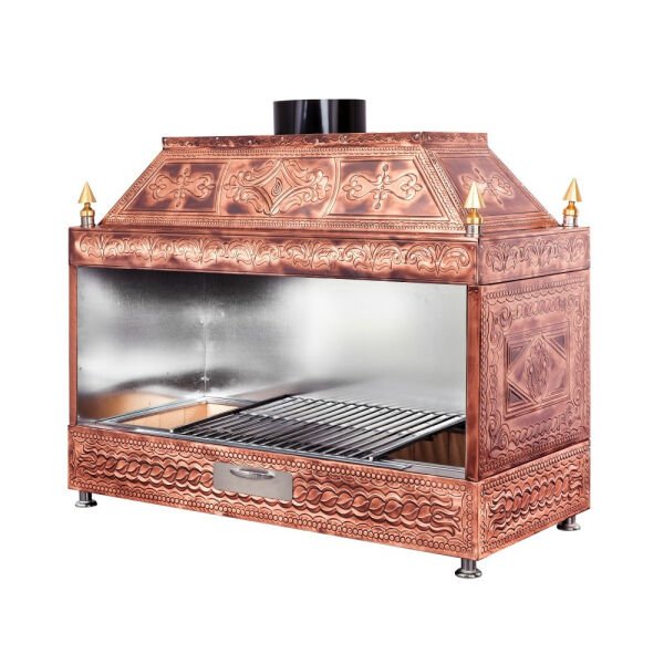 Bakır üzerine el işlemeleri ile bezenmiş, ateş tuğlası ve izolasyonu ile özel tasarım eseridir.