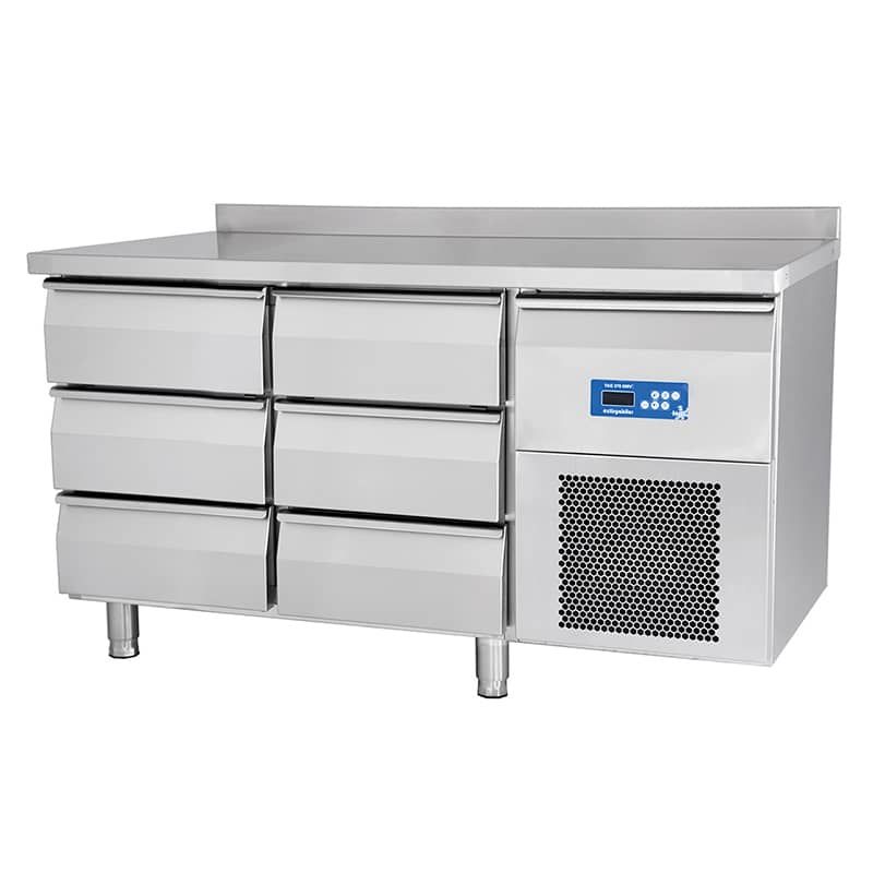 - Standart Norm 325 x 430 mm raf ölçülü 6 çekmeceli tezgah tipi derin dondurucu